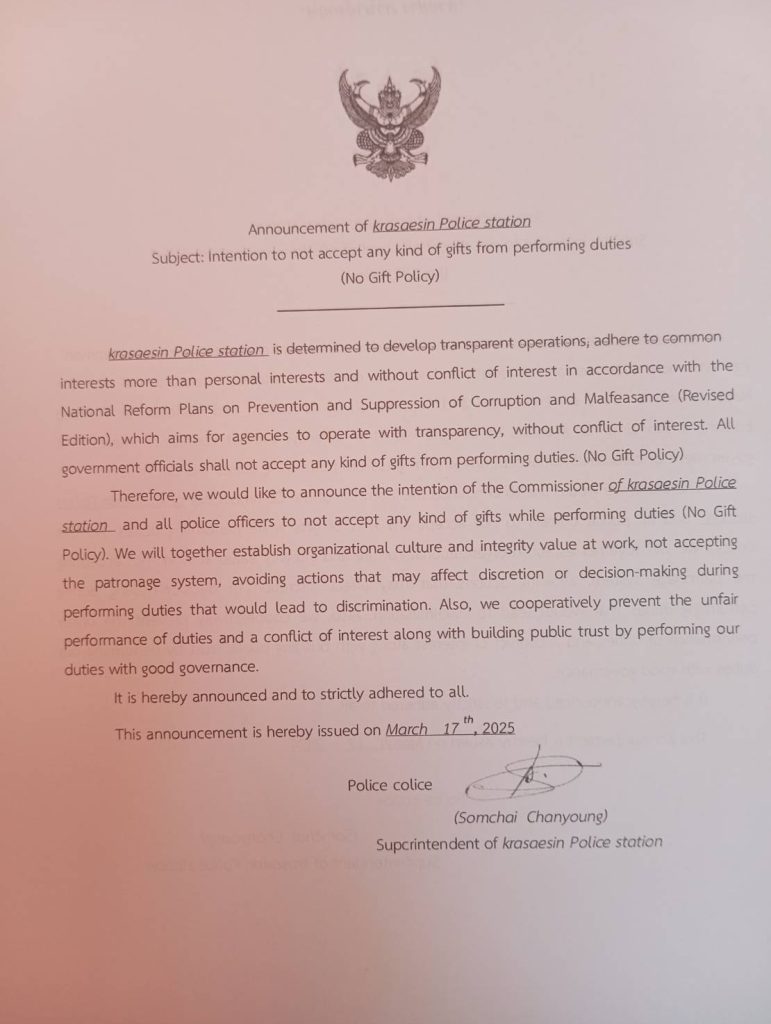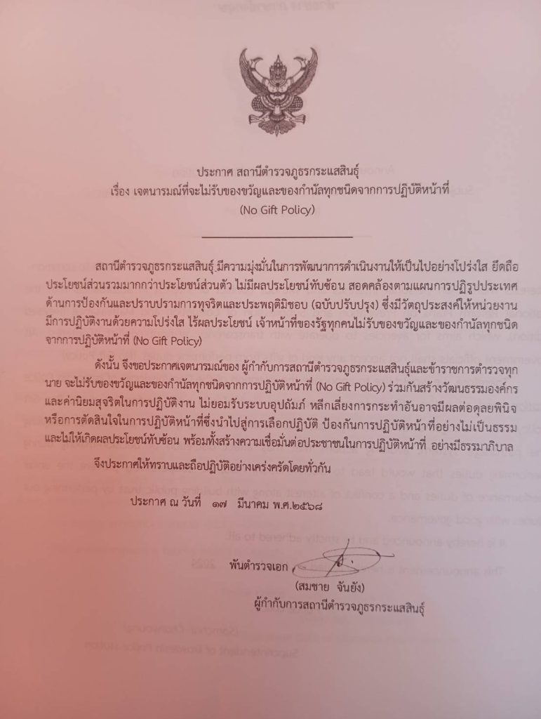 วันที่ ๒๘ กรกฎาคม ๒๕๖๘ พันตำรวจเอก สมชาย จันยัง ผู้กำกับการสถานีตำรวจภูธรกระแสสินธุ์ พร้อมด้วยข้าราช