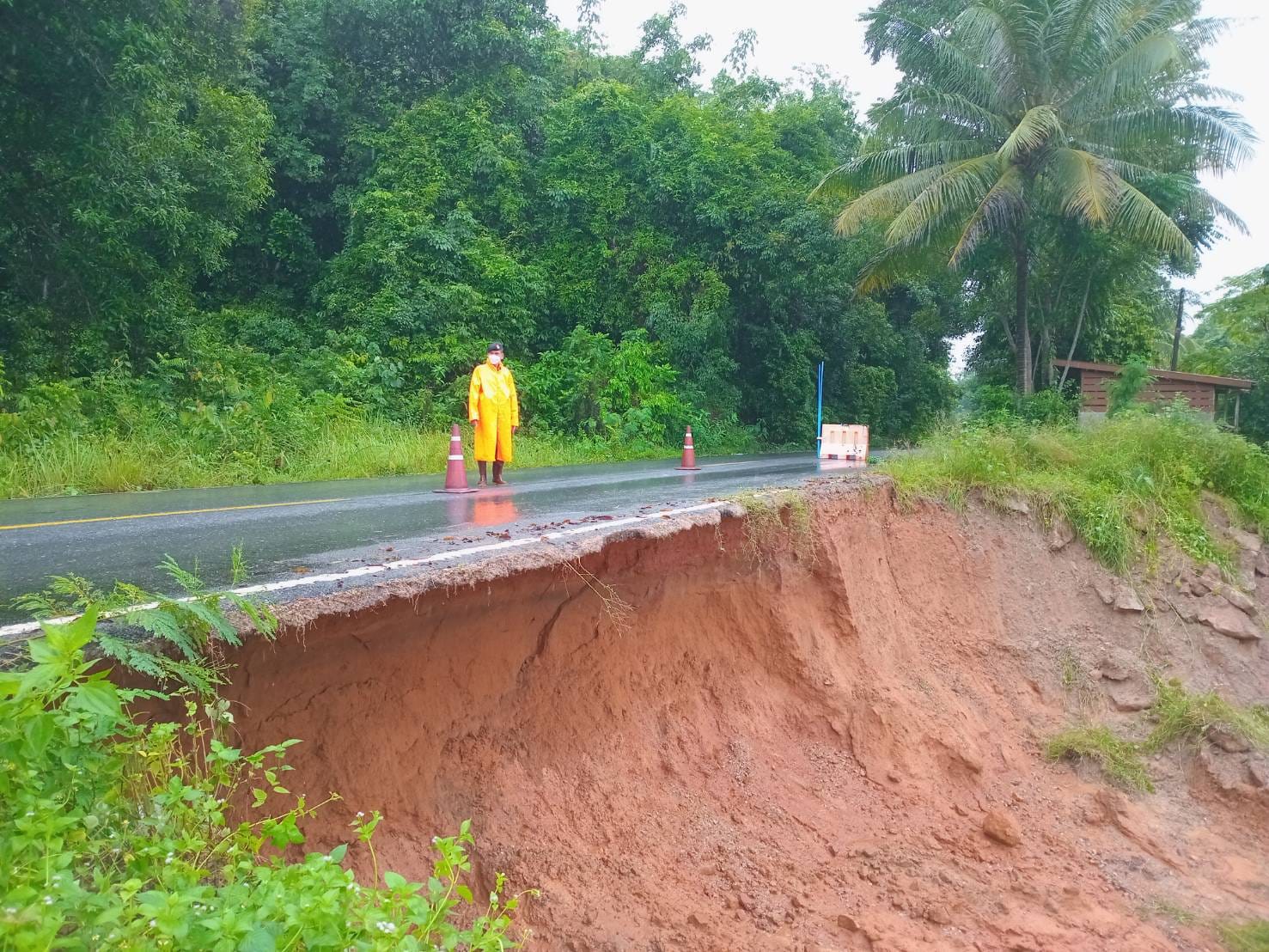 ขับผ่านระวังด้วยครับ พื้นที่ตำบลเกาะใหญ่ ถนนบ้านบ่อเรียน หมู่ที่ 7 ถนนมีดินยุบตัว ขับผ่านใช้ความระมั