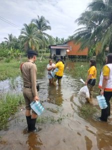 พ.ต.อ.สมชาย จันยัง ผกก.สภ.กระแสสินธุ์ พ.ต.ต.สิรศิษฏ์ จิตบรรจง สวป.ฯ/รรท.รอง ผกก.ป ได้สั่งการให้ ร.ต.อ.สากล พุทธกูล รอง สว.สส.ฯ/ร้อยเวร 20 ร่วม ปลัดอำเภอ เกษตรอำเภอ สาธารณสุขอำเภอ ผู้ใหญ่บ้านหมู่ 2 ต.โรง อ.กระแสสินธุ์ จ.สงขลา ร่วมกัน แจกข้าวกล้องพร้อมน้ำดื่มผู้ประสบภัยน้ำท่วมจำนวน 60 หลังคาเรือน![]()