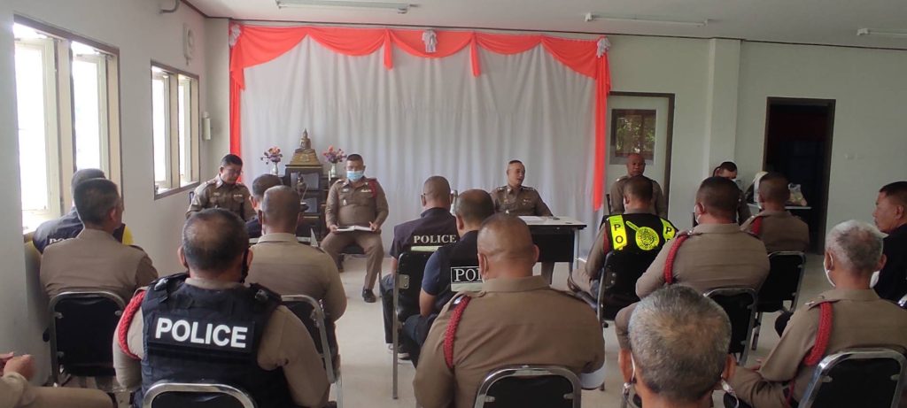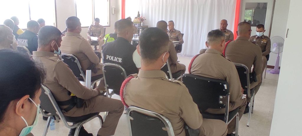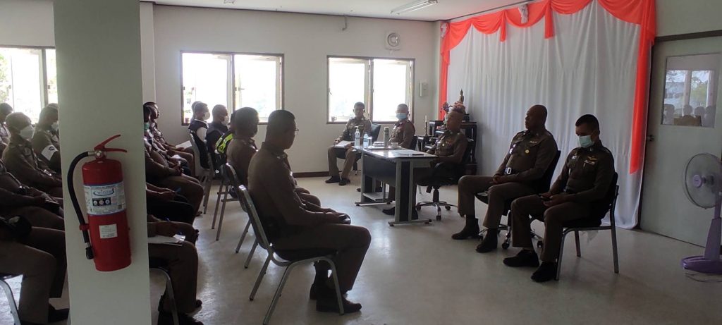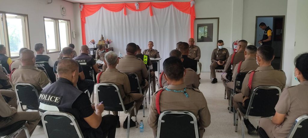 พันตำรวจเอก จุมพฏ เลี่ยมแก้ว ผู้กำกับการสถานีตำรวจภูธรกระแสสินธุ์ ประชุมประจำเดือนข้าราชการตำรวจ กำชับการปฏิบัติ และมอบนโยบาย ผู้บังคับบัญชา ให้กับข้าราชการตำรวจเพื่อเป็นแนวทางในการปฏิบัติหน้าที่
