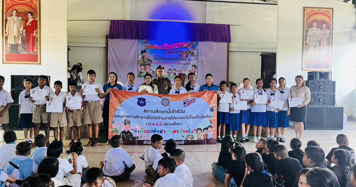สั่งการให้ ร.ต.ท.พิพัฒน์ ประยูร จนท. กบ.ฯ ปฏิบัติหน้าที่ครูตำรวจแดร์ โครงการการศึกษาเพื่อต่อต้านการใช้ยาเสพติดในเด็กนักเรียน(D. A. R. E.) มอบวุฒิบัตร ให้กับนักเรียน โรงเรียนวัดทุ่งบัว ต.กระแสสินธุ์ฯ อ.กระแสสินธุ์ ฯ ชั้นประถมศึกษาปีที่ 5 ชึ่งเรียนจบหลักสูตรและร่วมพิธีเปิดบ้านวิชาการและปัจฉิม ฯ