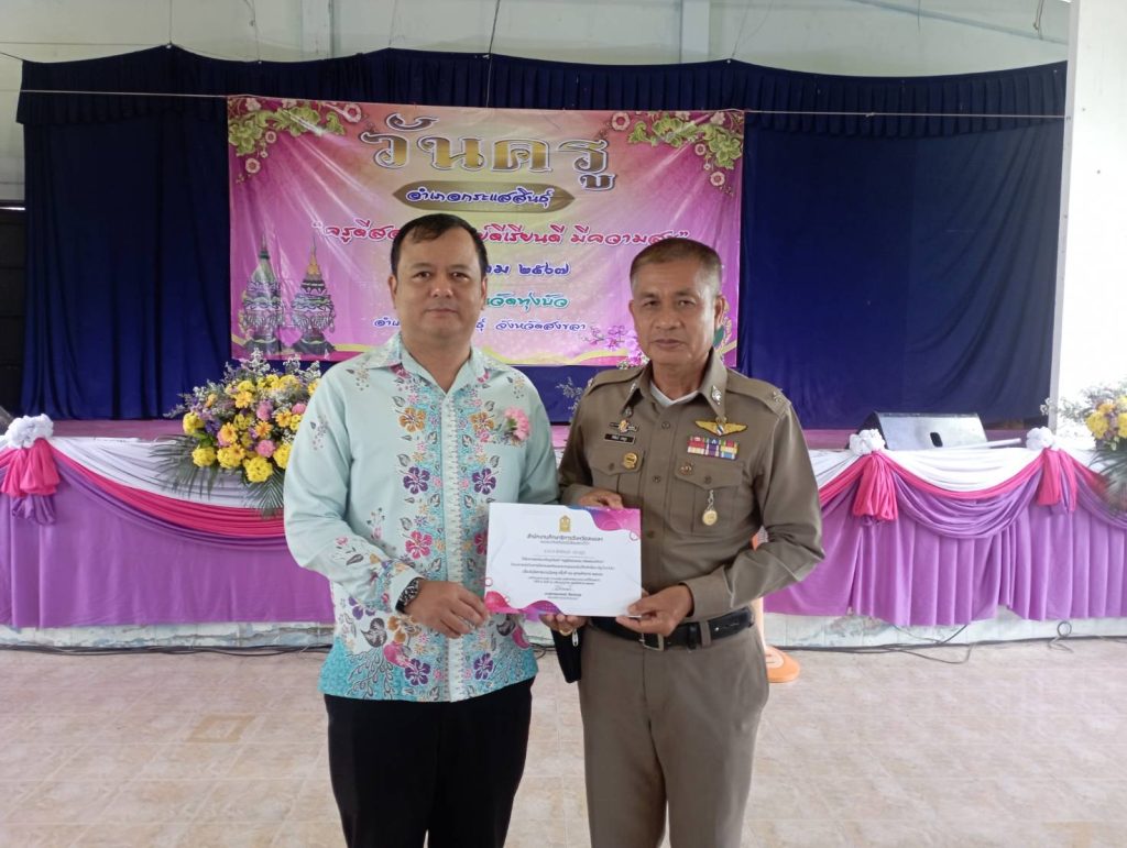 วันที่ 16 มกราคม 2567 ศูนย์เครือข่ายการศึกษากระแสสินธุ์ ได้พิจารณามอบเกียรติบัตร ครู D.A.R.E. การแก้ปัญหายาเสพติดในเด็กนักเรียน แด่ ร.ต.ต.พิพัฒน์ ประยูร รอง สว.(ป.) สภ.กระแสสินธุ์ จว.สงขลา