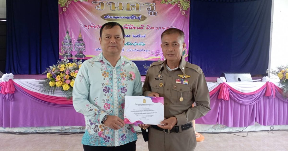 วันที่ 16 มกราคม 2567 ศูนย์เครือข่ายการศึกษากระแสสินธุ์ ได้พิจารณามอบเกียรติบัตร ครู D.A.R.E. การแก้ปัญหายาเสพติดในเด็กนักเรียน แด่ ร.ต.ต.พิพัฒน์ ประยูร รอง สว.(ป.) สภ.กระแสสินธุ์ จว.สงขลา
