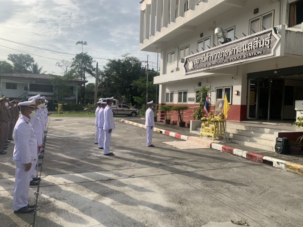 พ.ต.อ.จุมพฏ เลี่ยมแก้ว ผกก.สภ.กระแสสินธุ์ ได้นำข้าราชการตำรวจร่วมทำพิธีถวายสัตย์ปฏิญาณเพื่อเป็นข้าราชการที่ดีและพลังของแผ่นดิน ประจำปี ๒๕๖๖ เนื่องในโอกาสวันเฉลิมพระชนมพรรษา พระบาทสมเด็จพระเจ้าอยู่หัว ๒๘ กรกฎาคม ๒๕๖๖ ณ หน้าที่ทำการสถานีตำรวจภูธรกระแสสินธุ์