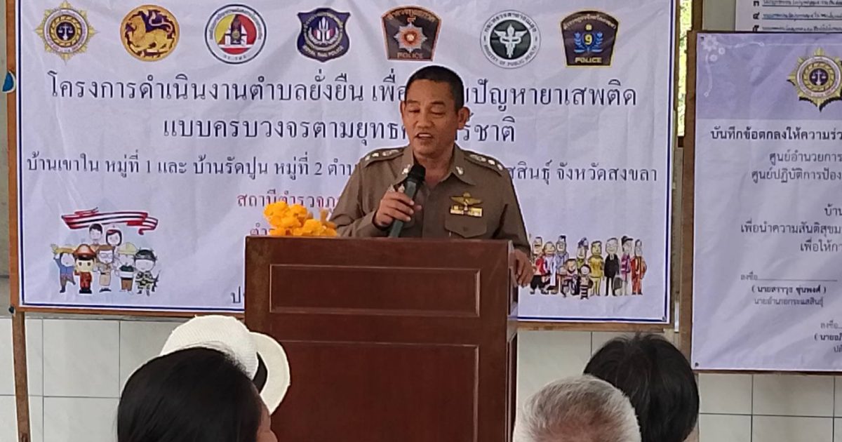 โครงการตำบลยังยืนปลอดยาเสพติด 22 เมษายน 2568 โดย admin / ผลการปฏิบัติงานสืบสวน,ผลการปฏิบัติงานสืบสวน,สืบ.(มี.ค.68) Facebook iconFacebookTwitter iconTwitterLINE iconLine12 มีนาคม 2568 เวลา 13.30 น พันตำรวจเอกสมชาย จันยัง ผู้กำกับการ พร้อมกำลัง ฝ่ายปกครอง สาธารณะสุข ร่วมเปิดโครงการตำบลยังยืนปลอดยาเสพติด ณ อาคารอเนกประสงค์หมู่ 2 บ้านรัดปูน ตำบลเชิงแส อำเภอกระแสสินธุ์ Facebook iconFacebookTwitter iconTwitterLINE iconLine