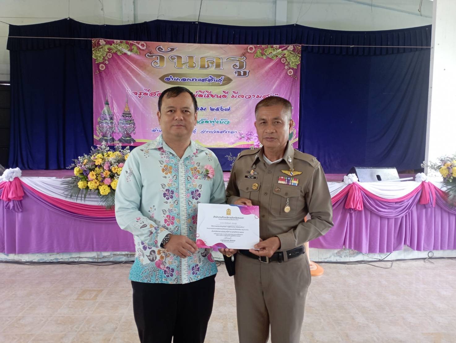 วันที่ ๑๖ มกราคม ๒๕๖๗พ.ต.อ.สมชาย จันยัง ผกก.สภ.กระแสสินธุ์เข้าร่วมพิธีวันครู “ครูดีสอนดี ศิษย์ดีเรีย