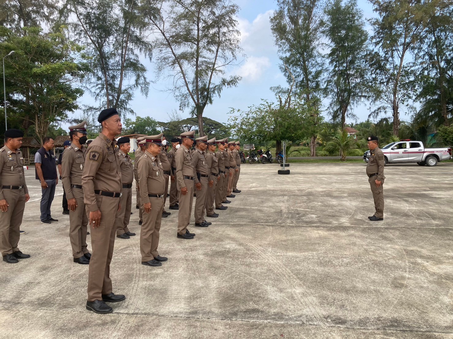 พ.ต.อ.สมชาย จันยัง ผกก.สภ.กระแสสินธุ์ ร่วมประชุมปล่อยแถวประจำสัปดาห์ ชี้แจง มอบนโยบาย กำชับในหัวข้อเรื่องการปฏิบัติตน ในเรื่องคุณธรรม ความโปร่งใสในการดำเนินงาน Integrity and Transparency Assessment (ITA) แก่ข้าราชการตำรวจในสังกัด ณ ลานหน้า สภ.กระแสสินธุ์