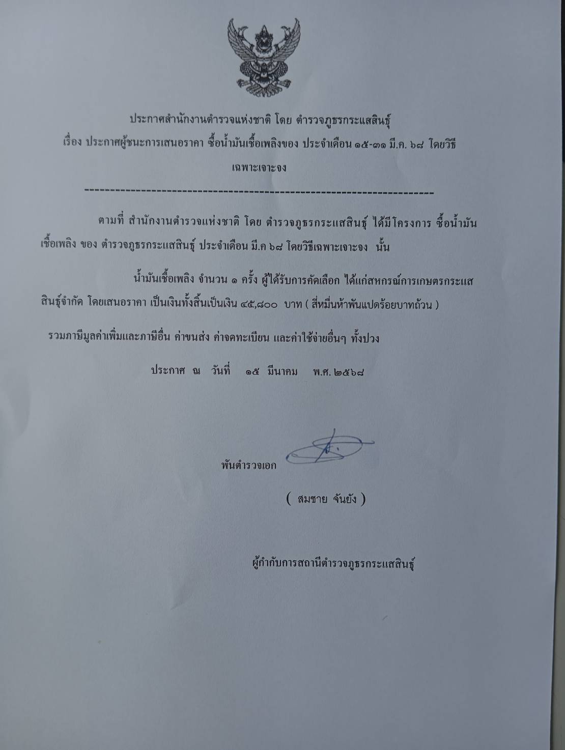 O15 : สรุปผลการจัดซื้อจัดจ้างรายเดือน